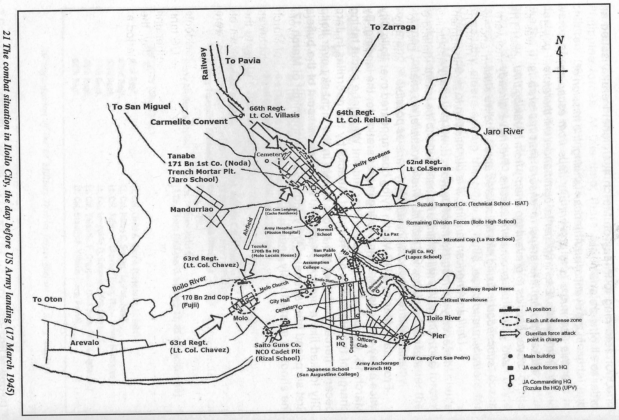 The guerrillas started to attack during the day. Their bullets even reached the quarters of Division Commander Fukue near the Iloilo High School. Daily reports from garrisons at different areas were showing that they were under attack by guerrilla forces with superior firearms. Clearly, the guerrilla resistance was by now operating at full scale. Consequently, Colonel Tozuka ordered the chief of the 3rd Company that was at the Tigbauan garrison to send 2nd Lieutenant Itsusuki’s platoon to Iloilo City to serve as the defense unit for headquarters. Its primary responsibility for now was to protect and defend the city against guerrilla attack.