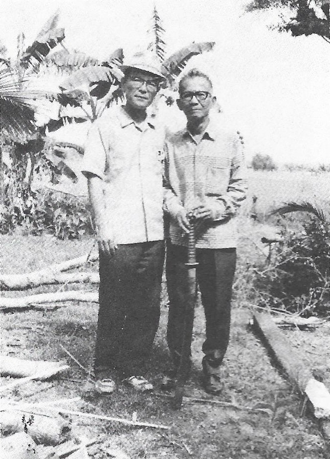 Toshimi Kumai (left), in 1974, withPatricio Confesor , wartime Deputy-Governor of Panay and Romblon and brother ofTomas Confesor .