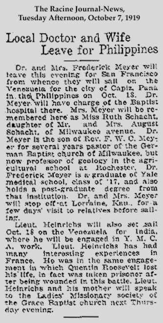She trained at Green Gables hospital at Lincoln, Neb., in 1920, and then took a year's training at Cook county hospital, Chicago. She volunteered for missionary work in the Philippines in 1922.