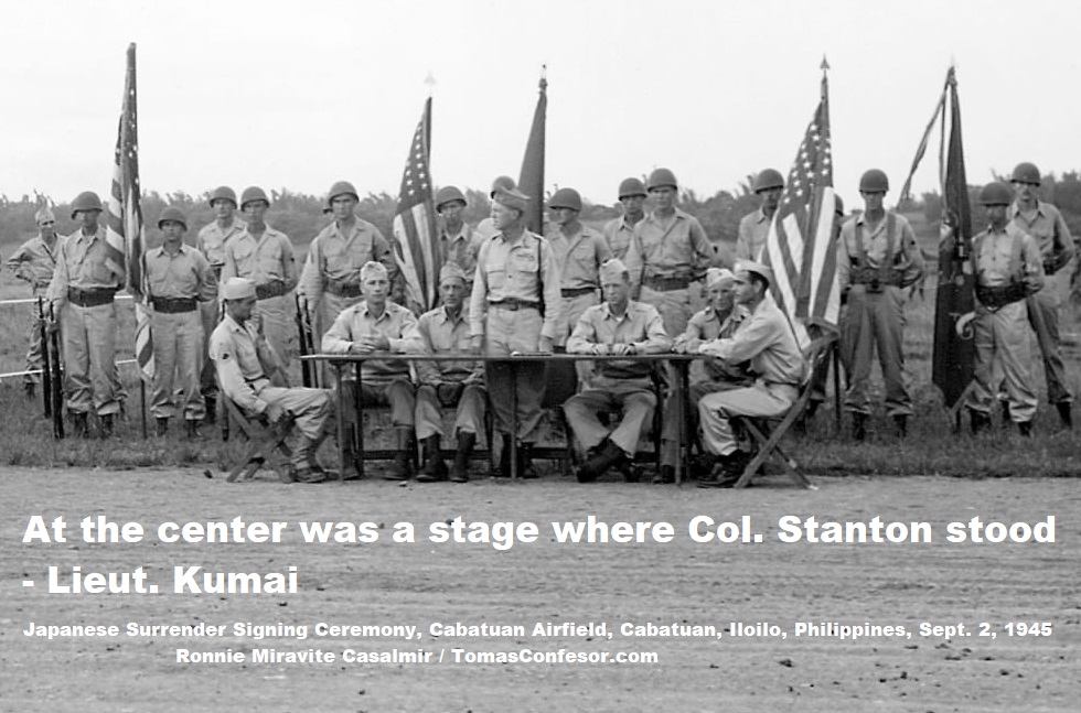 Col. Raymund G. Stanton at the Japanese Surrender Signing Ceremony at Cabatuan Airfield, Cabatuan, Iloilo, Philippines on September 2, 1945, the same day as the signing on U.S.S. Missouri