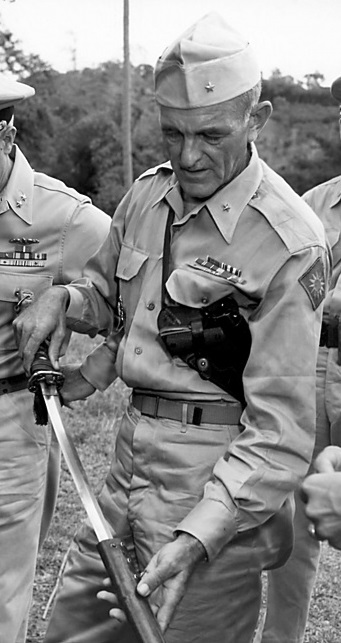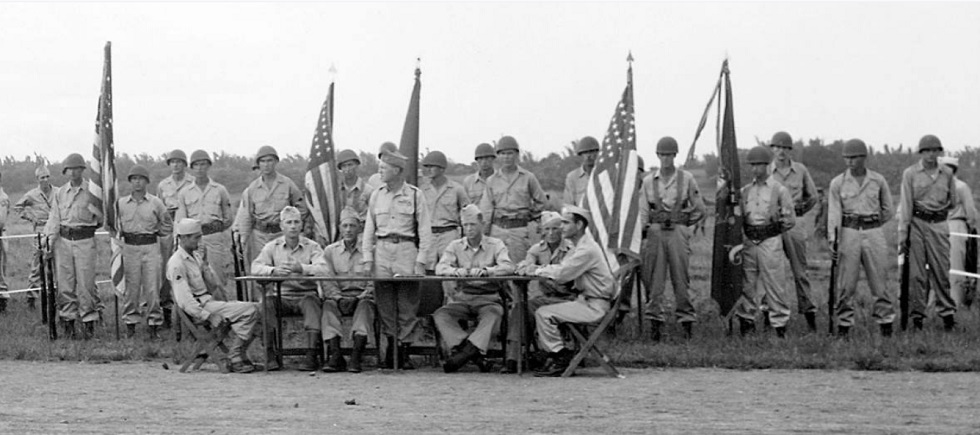 Protocol dictates that the surrender of a Colonel be received by another Colonel, and so, Col. Raymund G. Stanton, the commanding officer of the 160th Infantry Regiment, was designated to receive, even though his superiors were also present.