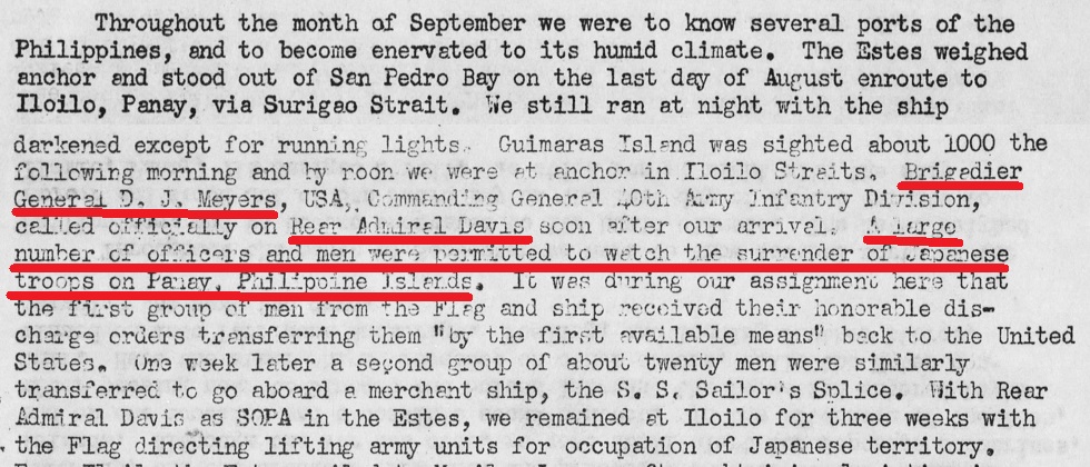 As he mentioned in part 3 of his 2010 interview, he returned back to Panay Island to take part in receiving the Japanese surrender in Panay Island.
