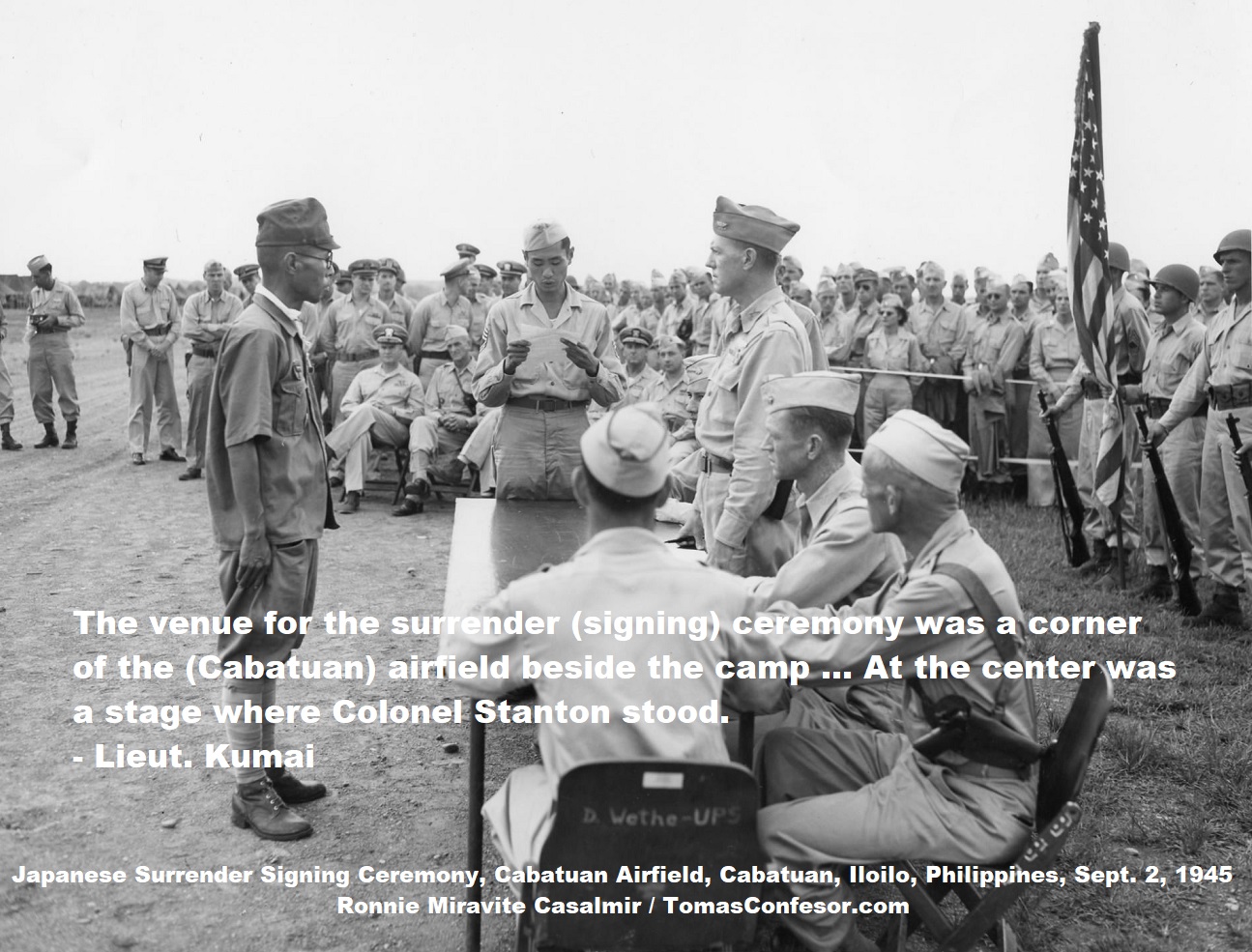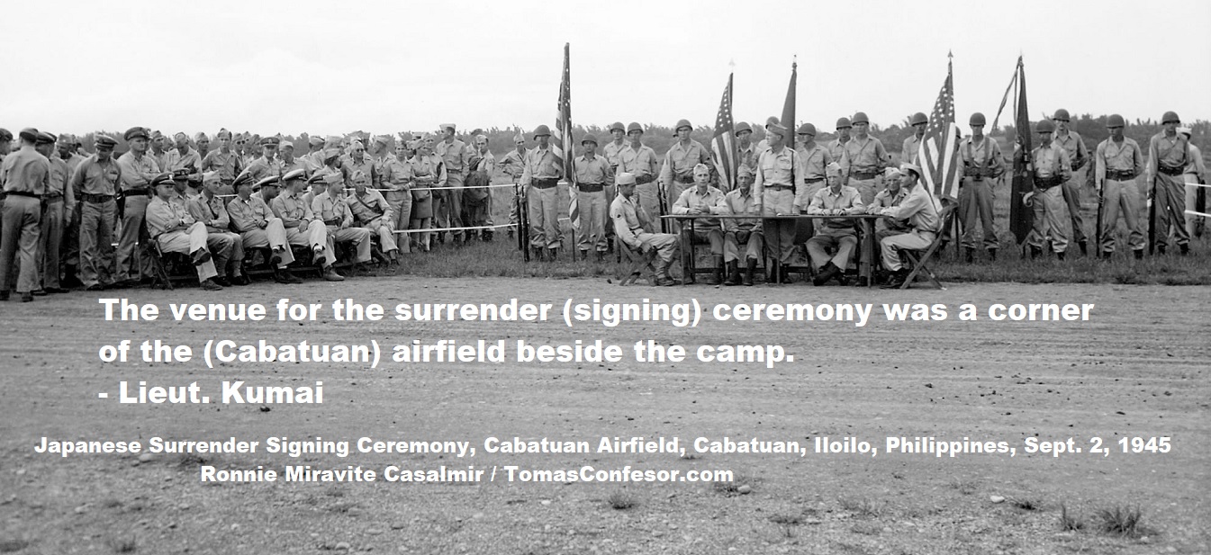 Upon their surrender, starting September 1, 1945, the Japanese were brought to Cabatuan Airfield and its POW Camp, and on September 2, 1945, the "formal surrender" or the "surrender signing ceremony" was held.