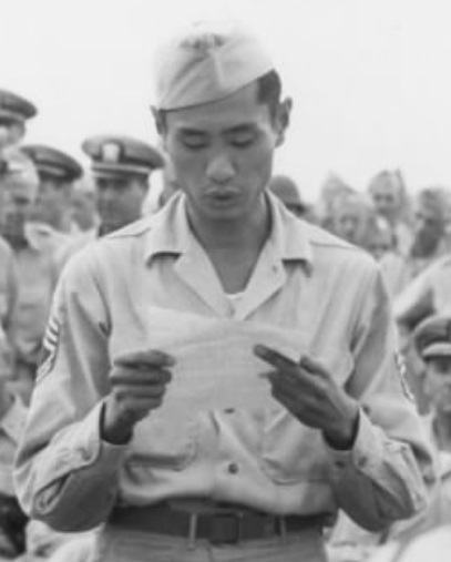 The surrender instrument was read by the Japanese-American translator T-Sgt. Terno Odow.