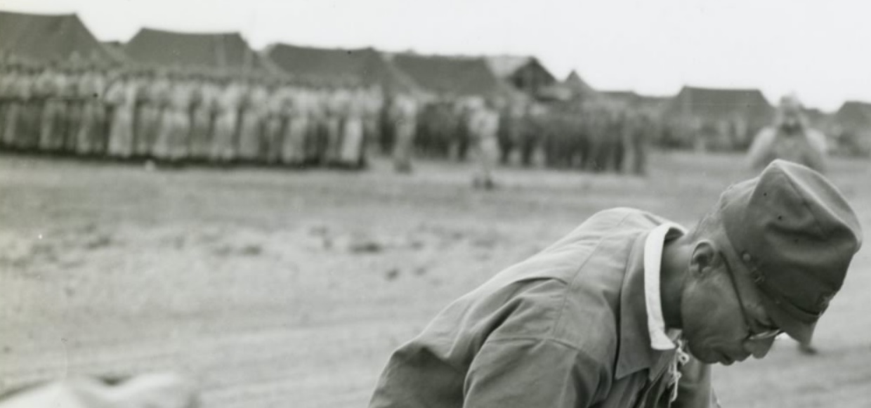 Lieut. Col. Ryoichi Tozuka at the Japanese Surrender Signing Ceremony at Cabatuan Airfield, Cabatuan, Iloilo, Philippines on September 2, 1945, the same day as the signing on U.S.S. Missouri
