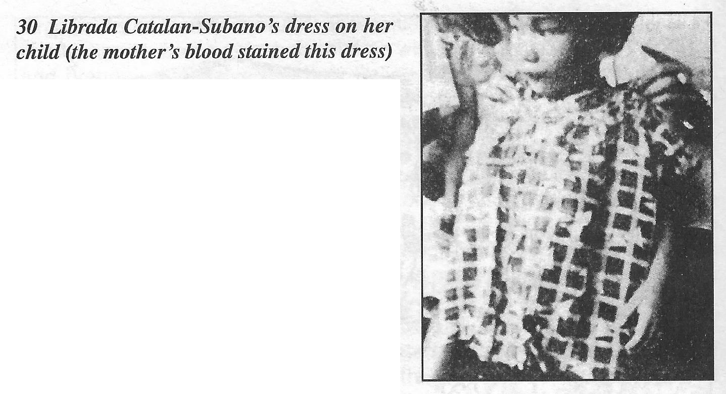 Librada Catalan-Subano's dress on her child (the mother's blood stained this dress).