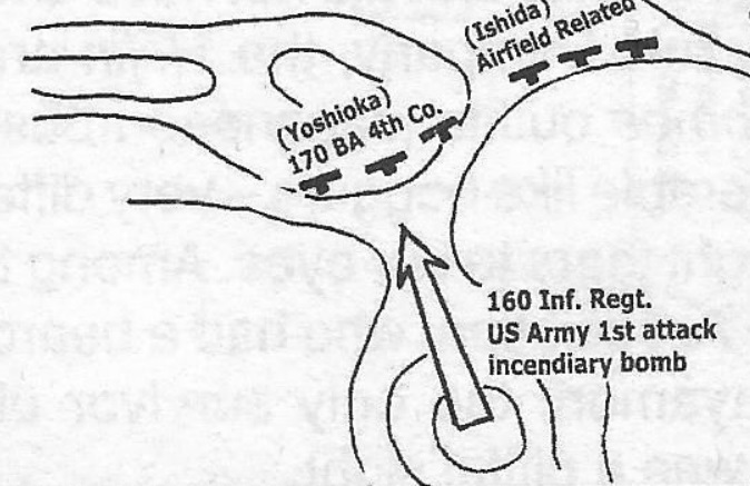 - Lt. Sadayoshi IshikawaOn the 6th, seven P-38's strafed the area and dropped gasoline tanks (Napalm bombs).