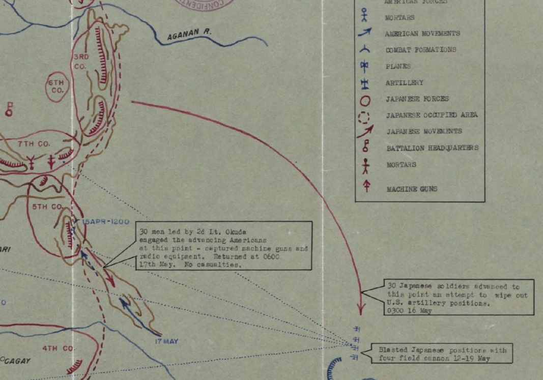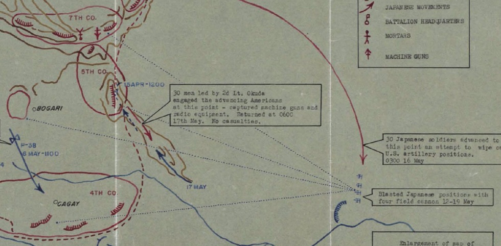 30 men led by 2d Lt. Okuda engaged the advancing Americans at this point - captured machine guns and radio equipment.