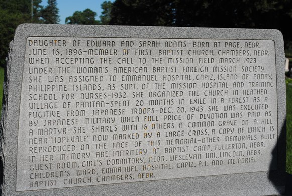 Friday's Announcement by the American Baptist Foreign Mission society that Miss Adams and 10 others of the missionary group were beheaded on Panay in 1943 was the family's first news of the means used by the Japanese to do away with the Nebraska nurse.