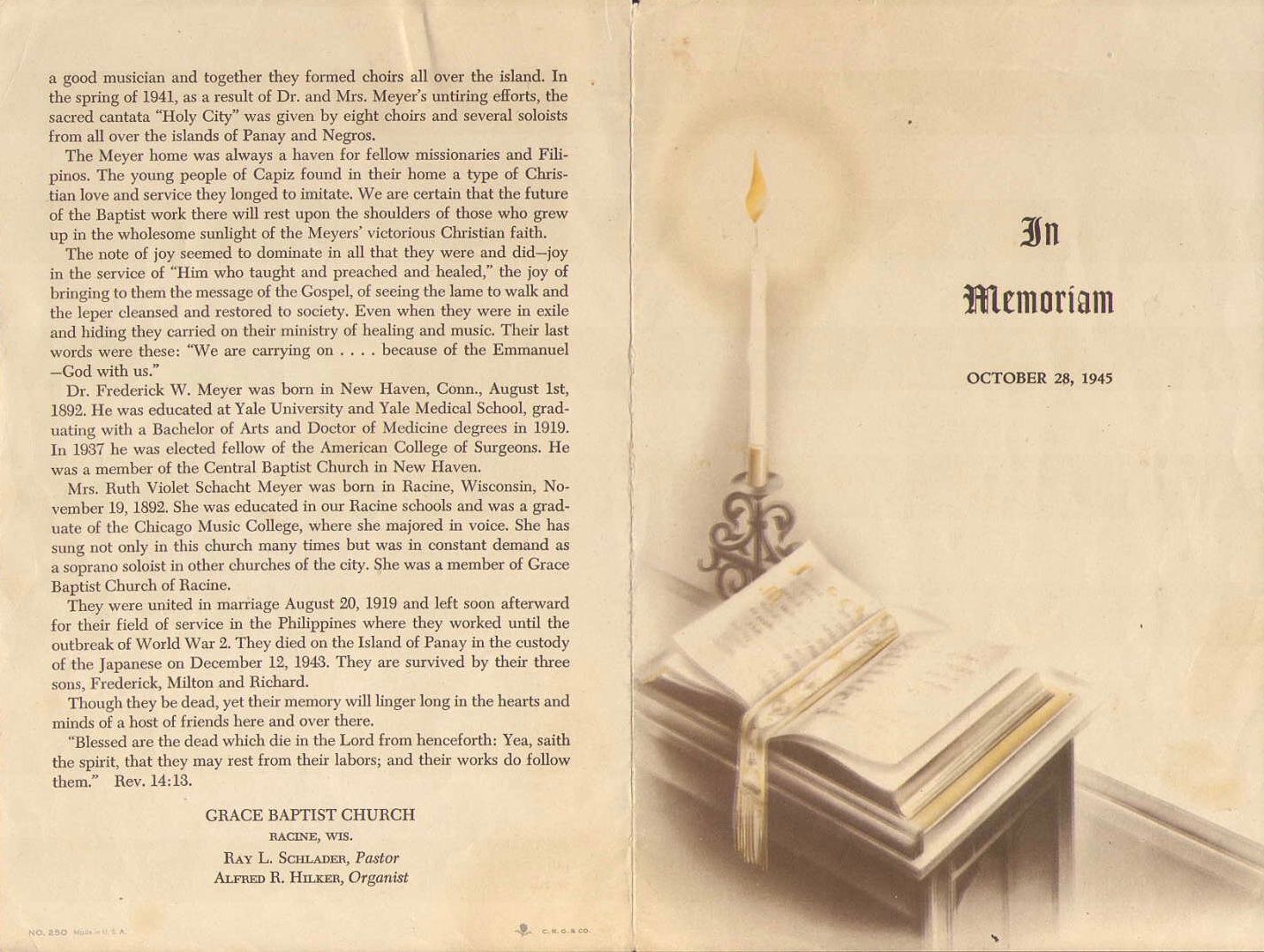 The society plans to publish a memorial booklet to the missionaries in the near future.