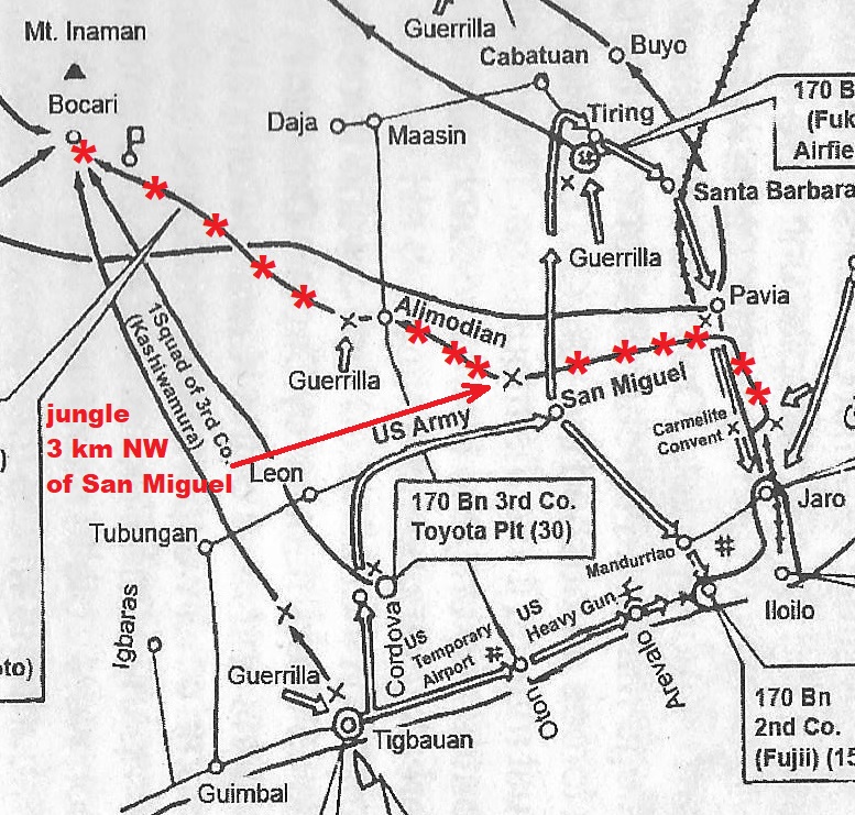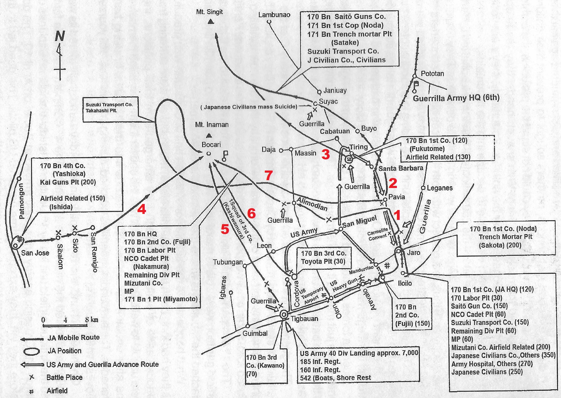 The withdrawal of the Japanese Forces to the mountains of Iloilo was done by 10 groups going to two destinations, Bocari and Mt. Bongbong*/Mt. Singit. Overall Map The Situation at Jaro