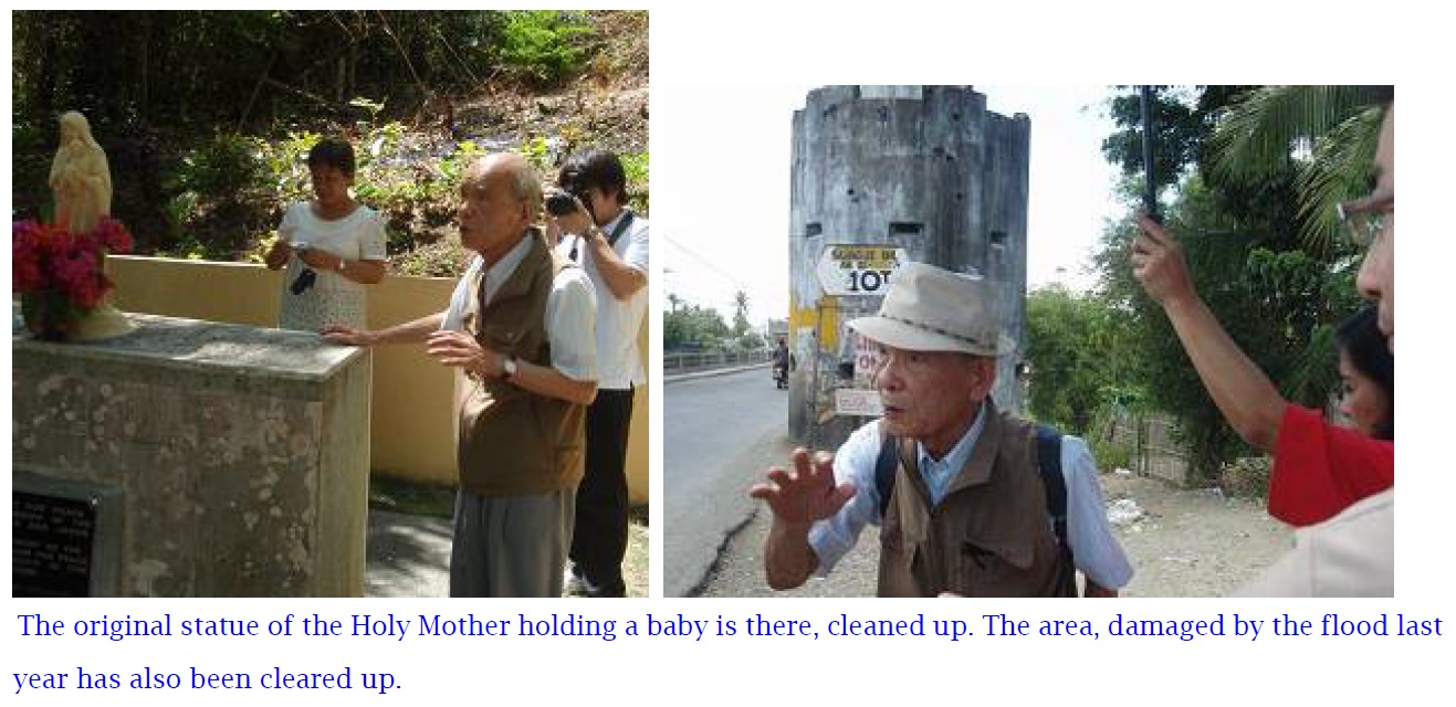 On the way from Iloilo City to the mountains, we crossed the bridge of Janiuay, where the Japanese tochika (pillbox) still stands. It was built for the protection of the important bridge on the big Molo River, but having been designed by an officer who was in the cold climate of Manchuria, the inside was as hot as a steam bath, so it functioned just as deterrent, he explained. Driving around the suburbs of Iloilo, listening to Kumai’s story, I couldn’t but feel shocked to think about the warfare that happened in this beautiful green country. Mr. Kumai writes that in his first revisit in 1974, the people of Panay were already kind and friendly to him and his group, who tried to look for the remains of the Japanese soldiers and civilians. They had even brought up some Japanese orphans.