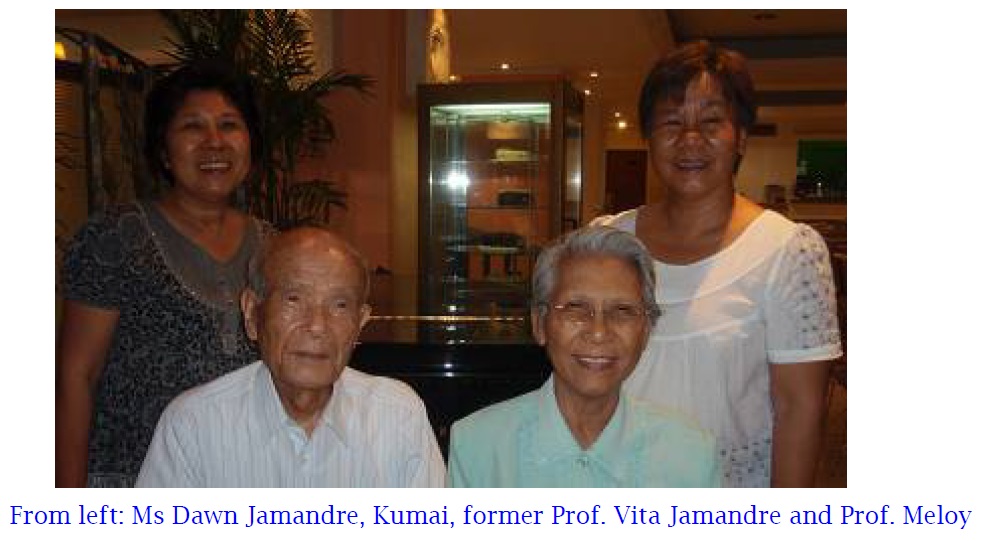 Through Professor Meloy’s introduction, Mr. Kumai met the Jamandres five years ago. Mrs. Vita Jamandre’s mother, the late Mrs. Natividad Mallari was tortured by the Japanese Kempeitai in Fort Santiago, as she had been helping her brother, who was a guerrilla. After the war, she regularly visited them (the Japanese Kempeitai) in Muntinglupa, where they were held as war criminals, a lot of them being sentenced to death. She supported them with her Christian faith and love, becoming a close friend of them. The late Mr. Gintaro Shirota, who I could meet twice and the author of the well-known “Song of Muntinglupa”, and many others invited her to Japan, and their friendship involving their families is still alive.