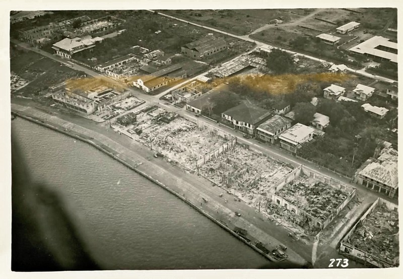 1425 19 March 1945. A large explosion is reported east of Point PETER and west of ILOILO River mouth; cause unidentified. No people are in sight. It appears to be a fuel explosion on dock. Small fires continue to break out in ILOILO city.