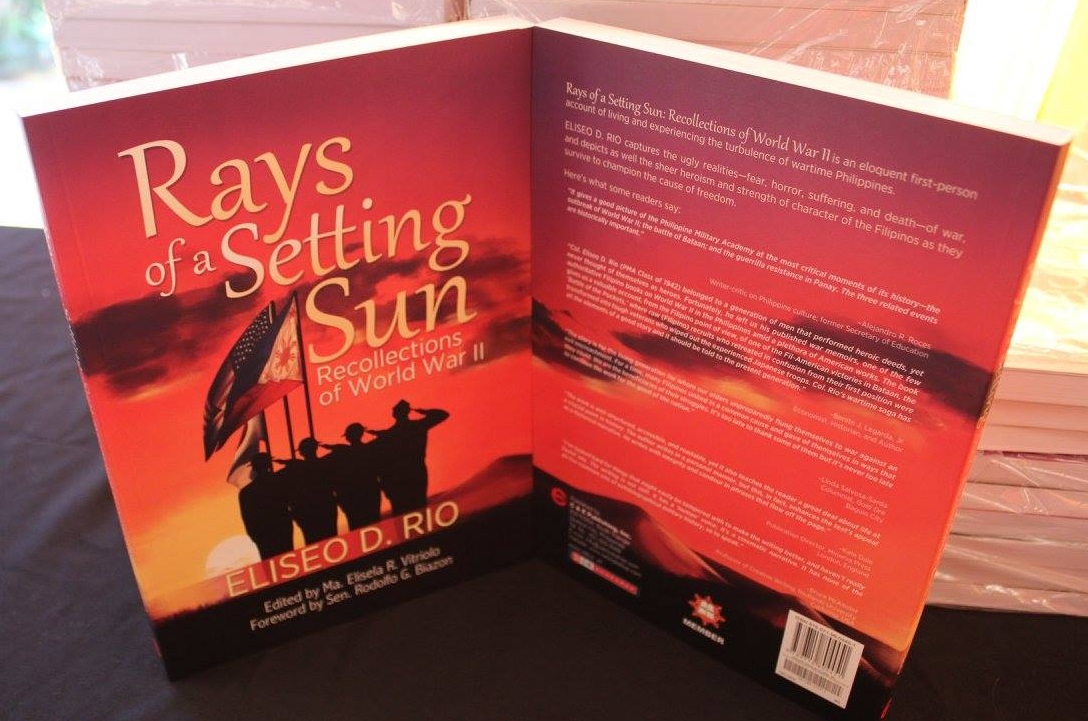 “Rays of a Setting Sun: Recollections of World War II” is the title of the book authored by Col. Eliseo D. Rio Sr., a Filipino freedom fighter who witnessed the turbulence of wartime in the Philippines and survived the gruesome ordeal of the Bataan Death March. This book was originally published in 1999 but undergone editing to reach a wider audience and continue its purpose of providing the Filipinos a primary source of important events in our history.