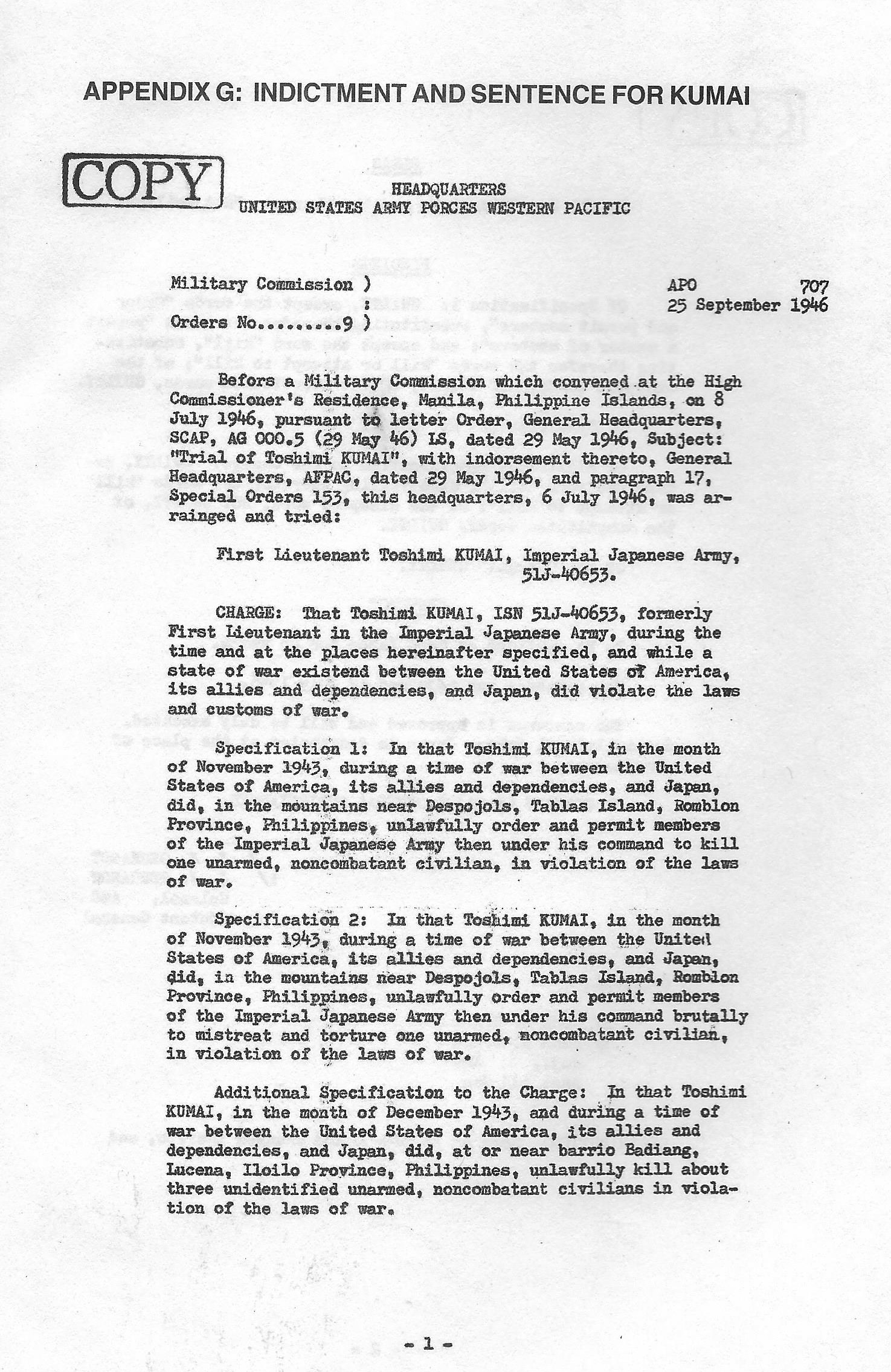 INDICTMENT AND SENTENCE FOR KUMAI