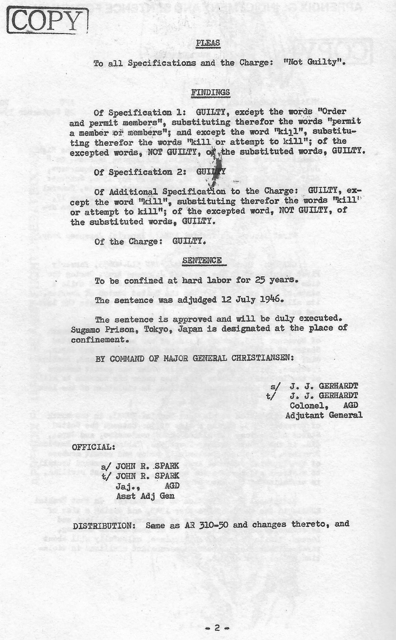 The sentence was adjudged 12 July 1946.